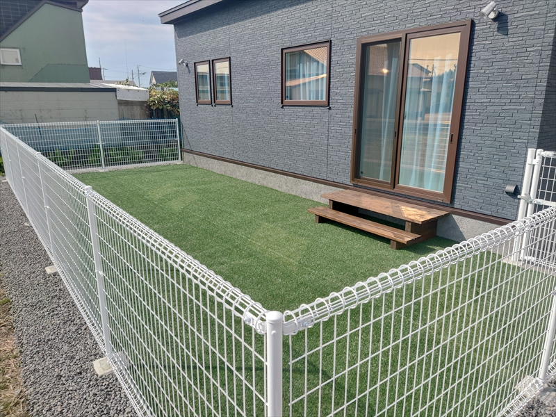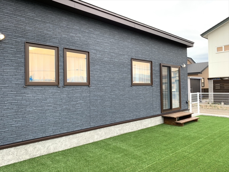 ニューファミリーtype[子どもの夢も大人の夢もいっぱい詰まった家] 伊達市長和町 L邸 正面に窓がないスッキリとした外観の平屋のおうち。 裏へ周ると緑鮮やかな広いドッグラン! リビングから気軽にドッグランへ出て遊べます。 アクセントウォールを随所に使用した遊び心あるおうちです。 「もうちょっと詳しい内容が知りたい!」「土地もいっしょに探してほしい!」「いますぐプランニングしてほしい!」 いろんなお客さまのニーズにお応えしています。直接電話はイヤ……。という方は、まずは資料請求ページからご請求ください!
