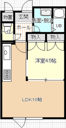 冷暖房エアコン、灯油ストーブ、ユニットバス、バストイレ別、洗面台、ガス給湯、物置